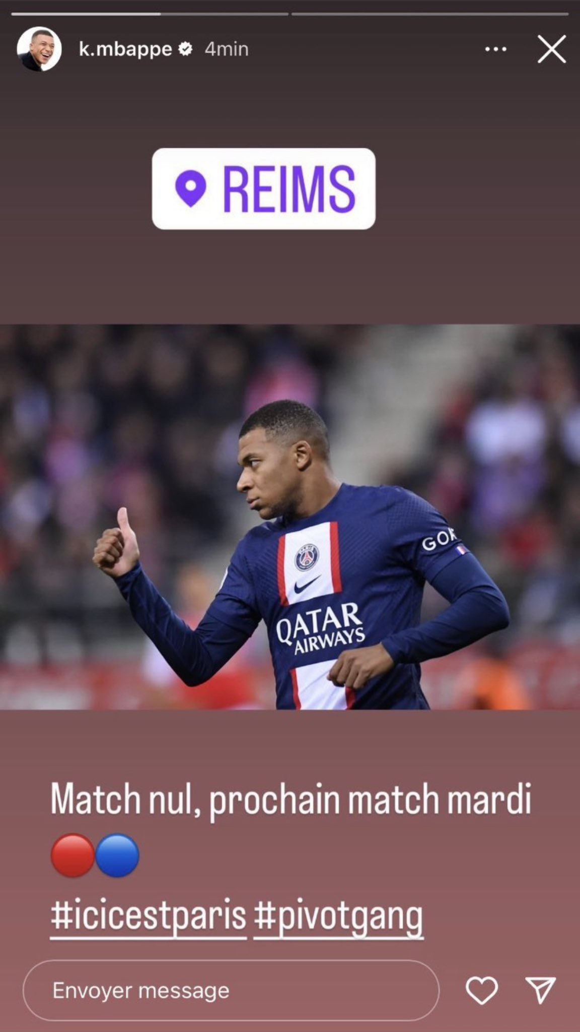 Kylian Mbappe post un message étrange apres Reims-PSG